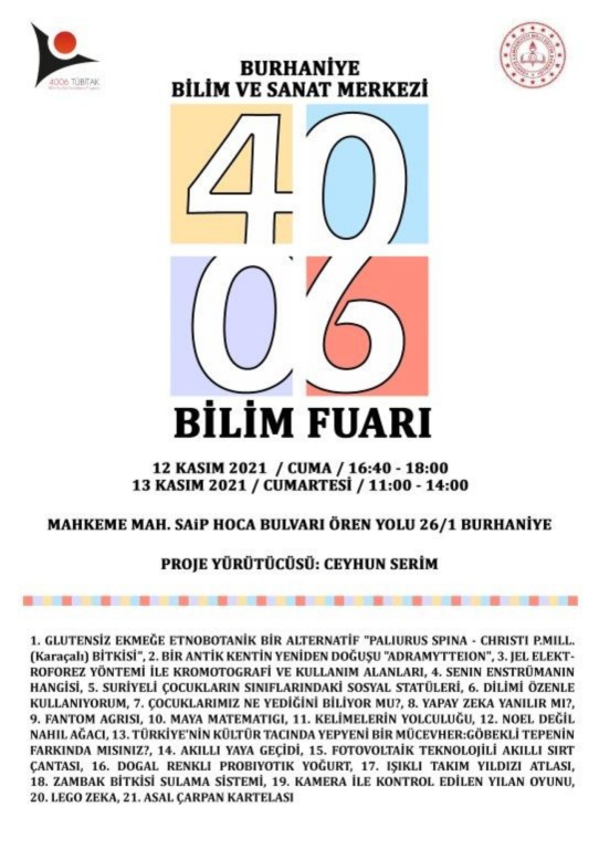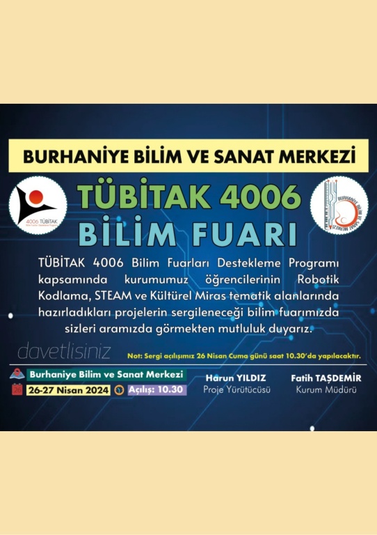 4006 TÜBİTAK Bilim Fuarları Destekleme Programı Katılımlarımız